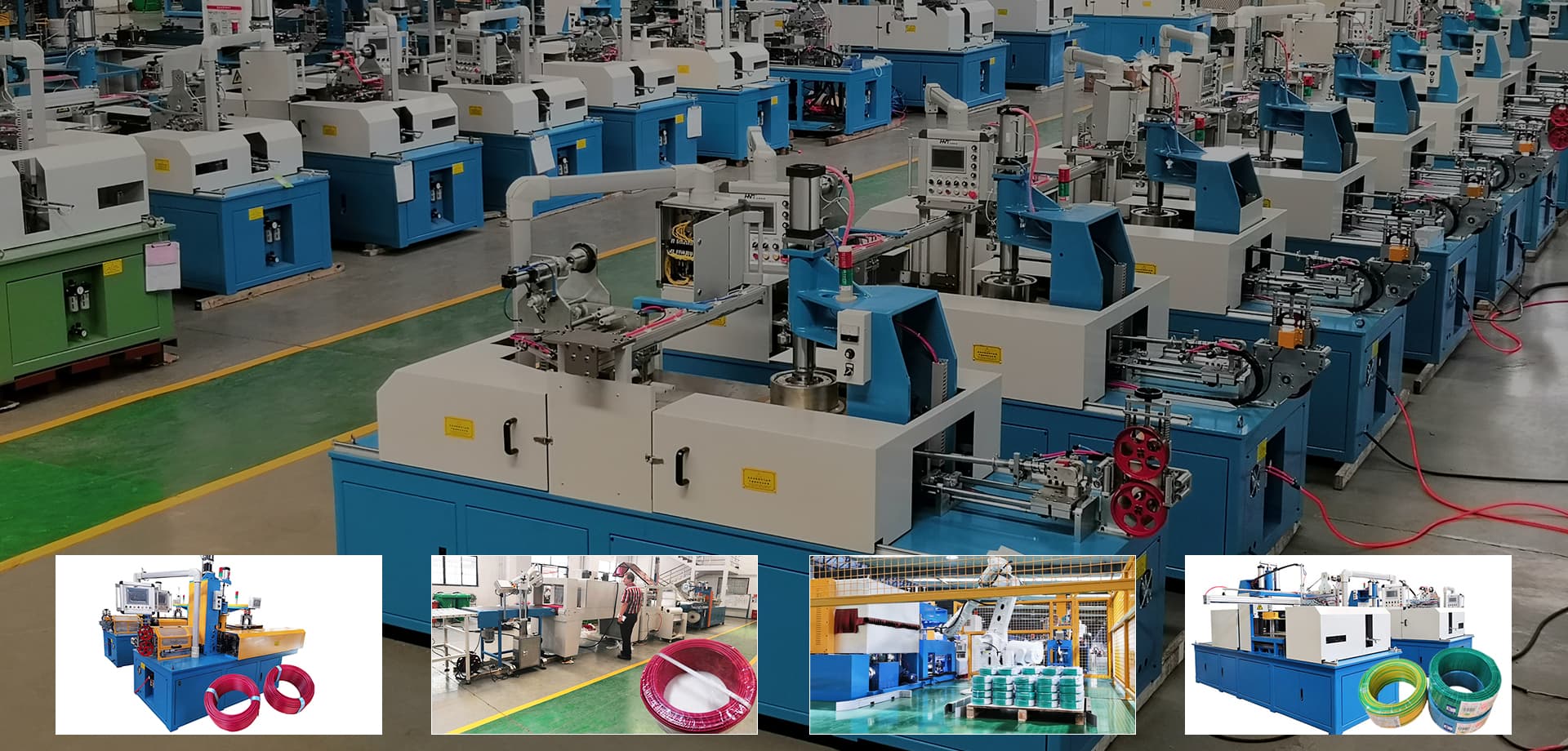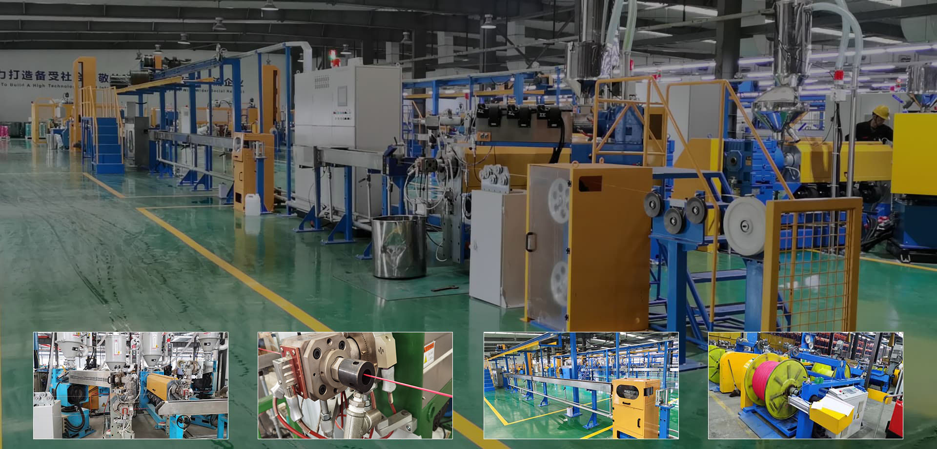 公司主要生產(chǎn)電線(xiàn)電纜擠出生產(chǎn)線(xiàn),擠出機(jī),絞線(xiàn)機(jī),成圈包裝設(shè)備,成圈扎帶機(jī),收放線(xiàn)架等相關(guān)設(shè)備,主要應(yīng)用行業(yè)有建筑電纜,數(shù)據(jù)電纜,電子線(xiàn)纜,電源線(xiàn)等等。