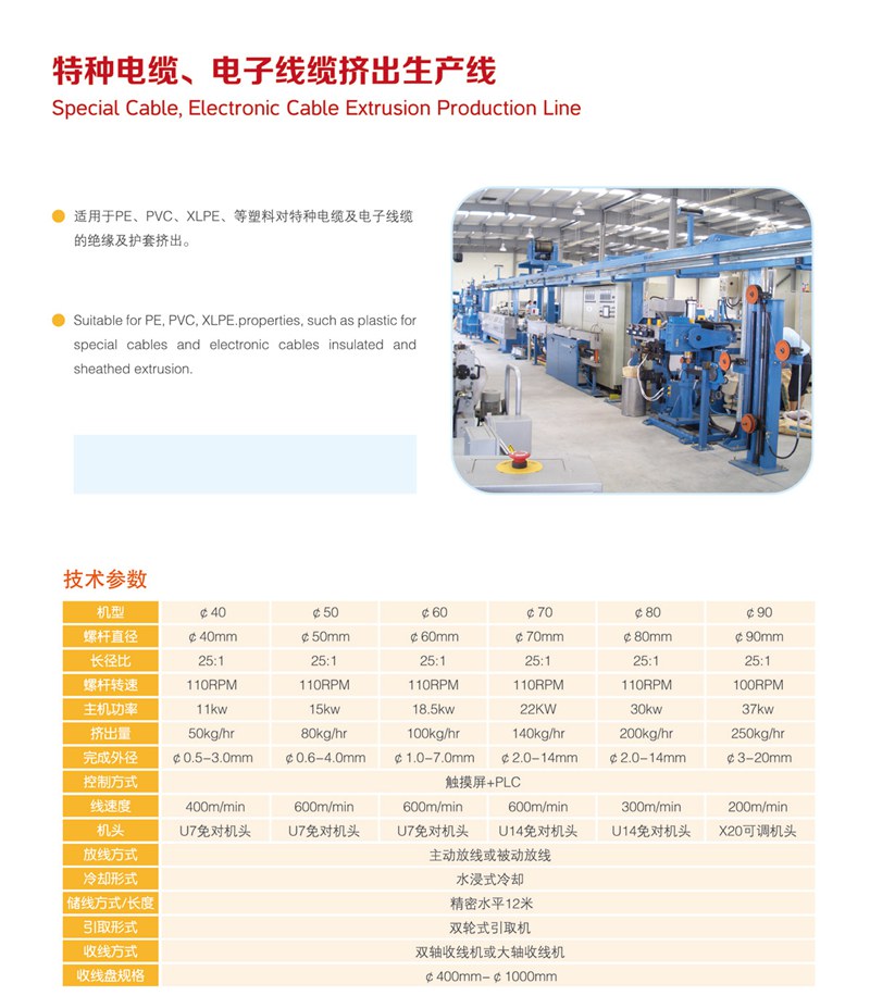 特種線纜、電子線纜擠出生產(chǎn)線